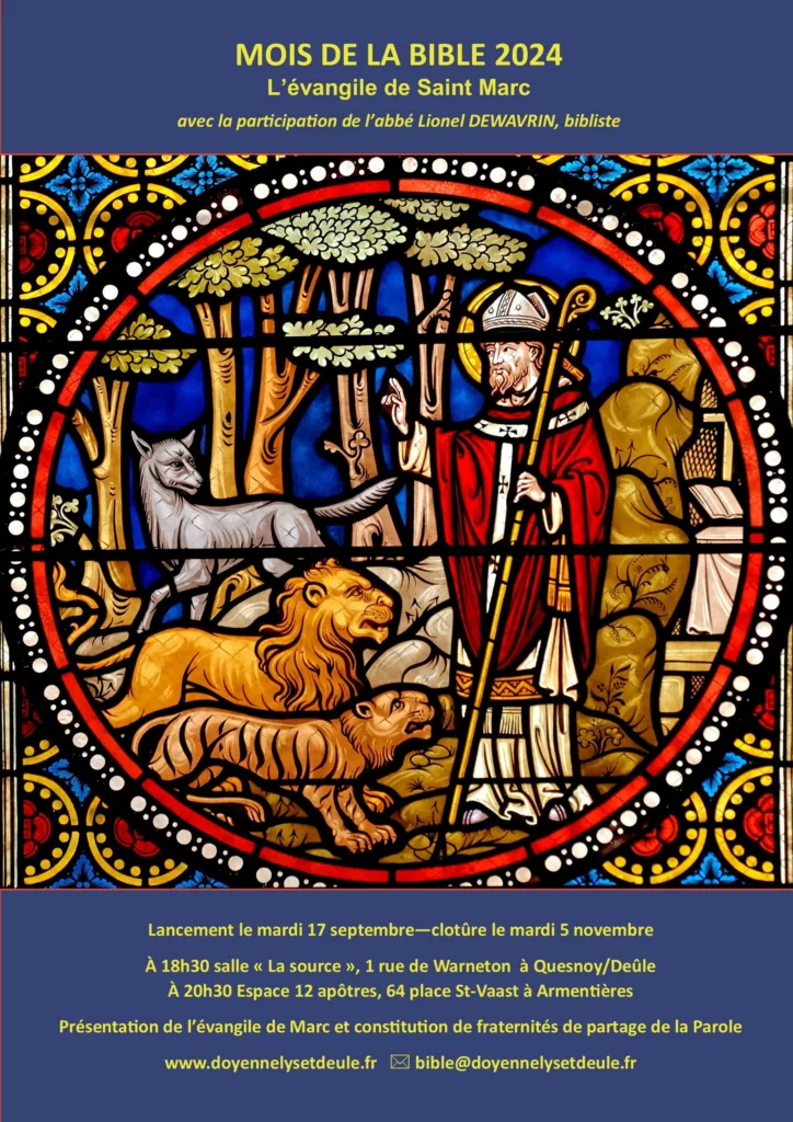 Pour vivre le mois de la Bible, une rencontre d’entrainement est proposée avec un intervenant qui nous introduit au livre biblique étudié cette année. Le Père Lionel nous présente l’évangile de Marc.