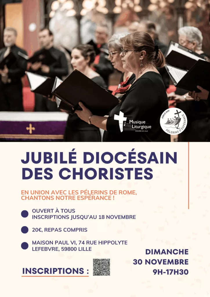la commission de musique liturgique de Lille est heureuse de vous inviter au jubilé diocésain des choristes ! N’hésitez pas à partager autour de vous, à venir entre amis et en famille.