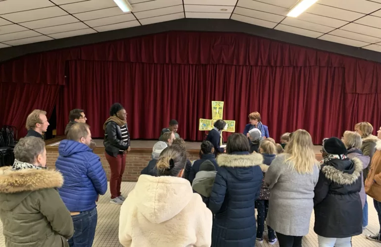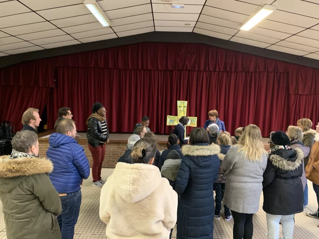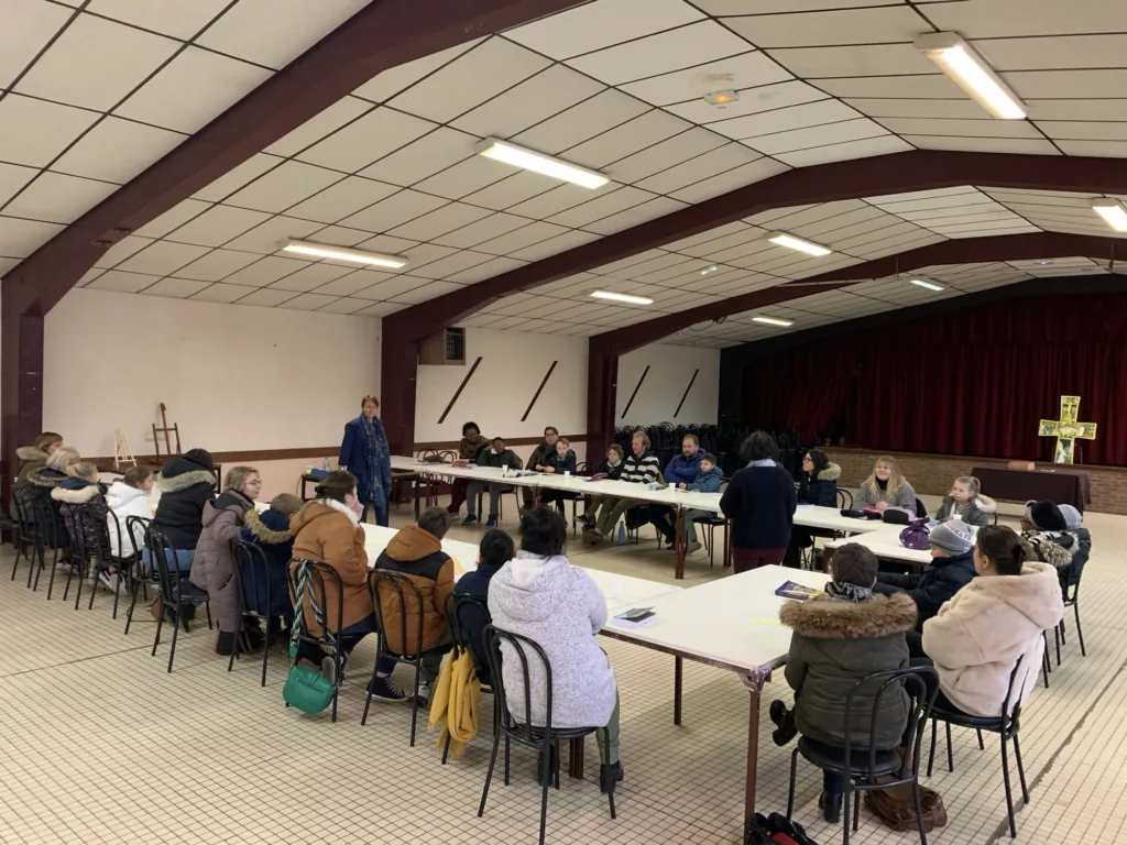 Accompagnés de leurs parents, les enfants se sont retrouvés ce dimanche matin avant la messe pour se préparer à la première des eucharisties.