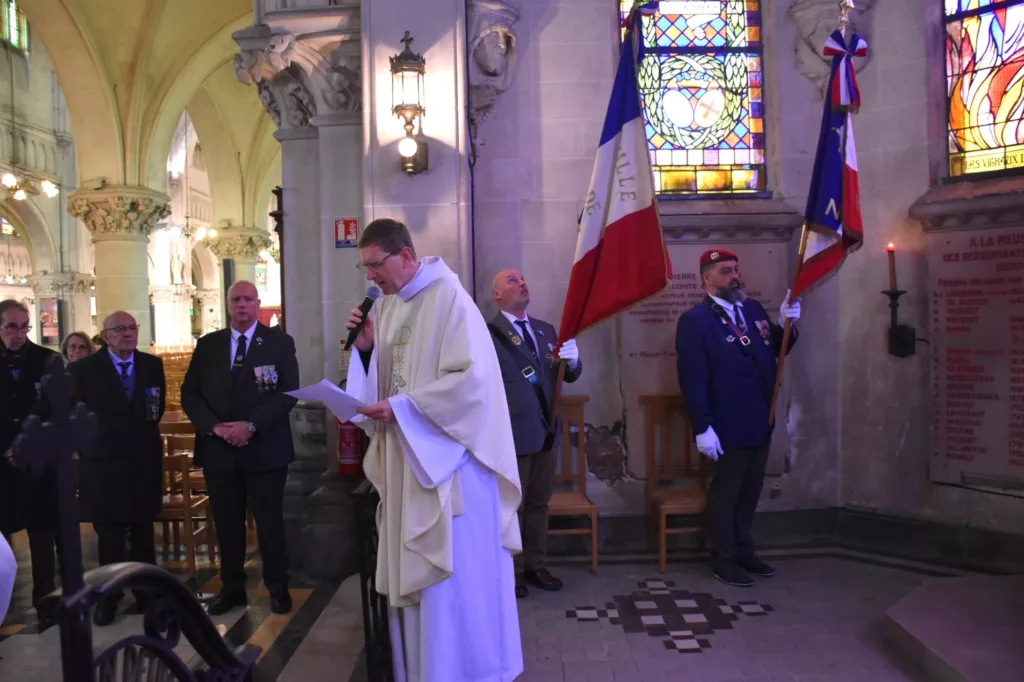 Chaque 11 novembre, la paroisse célèbre son Saint patron et célèbre une messe demandée par la municipalité pour les victimes civiles et militaires de la grande guerre. Ce mardi, à la fin de la messe avant de nous rendre au monument aux morts situé à l’extérieur, certains ont pu redécouvrir dans la chapelle des morts les plaques commémoratives des victimes civiles de la guerre 1914-1918. Celles-ci ont été honorés afin qu’on ne les oublient pas !