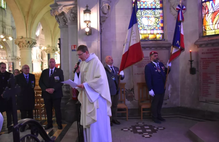 Chaque 11 novembre, la paroisse célèbre son Saint patron et célèbre une messe demandée par la municipalité pour les victimes civiles et militaires de la grande guerre. Ce mardi, à la fin de la messe avant de nous rendre au monument aux morts situé à l’extérieur, certains ont pu redécouvrir dans la chapelle des morts les plaques commémoratives des victimes civiles de la guerre 1914-1918. Celles-ci ont été honorés afin qu’on ne les oublient pas !