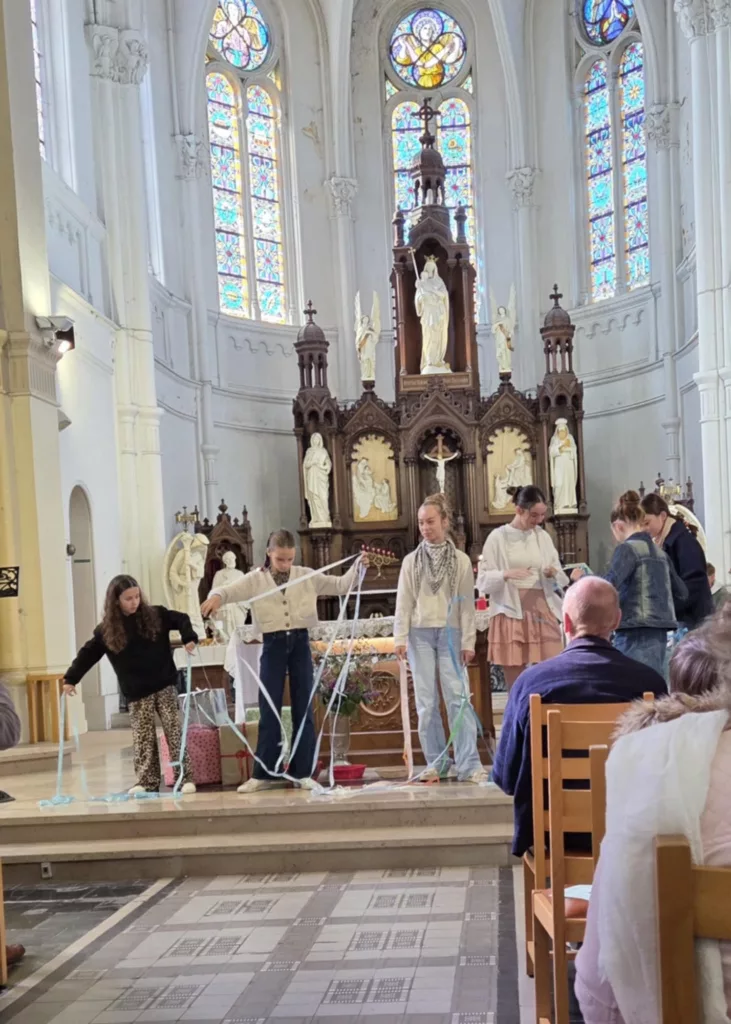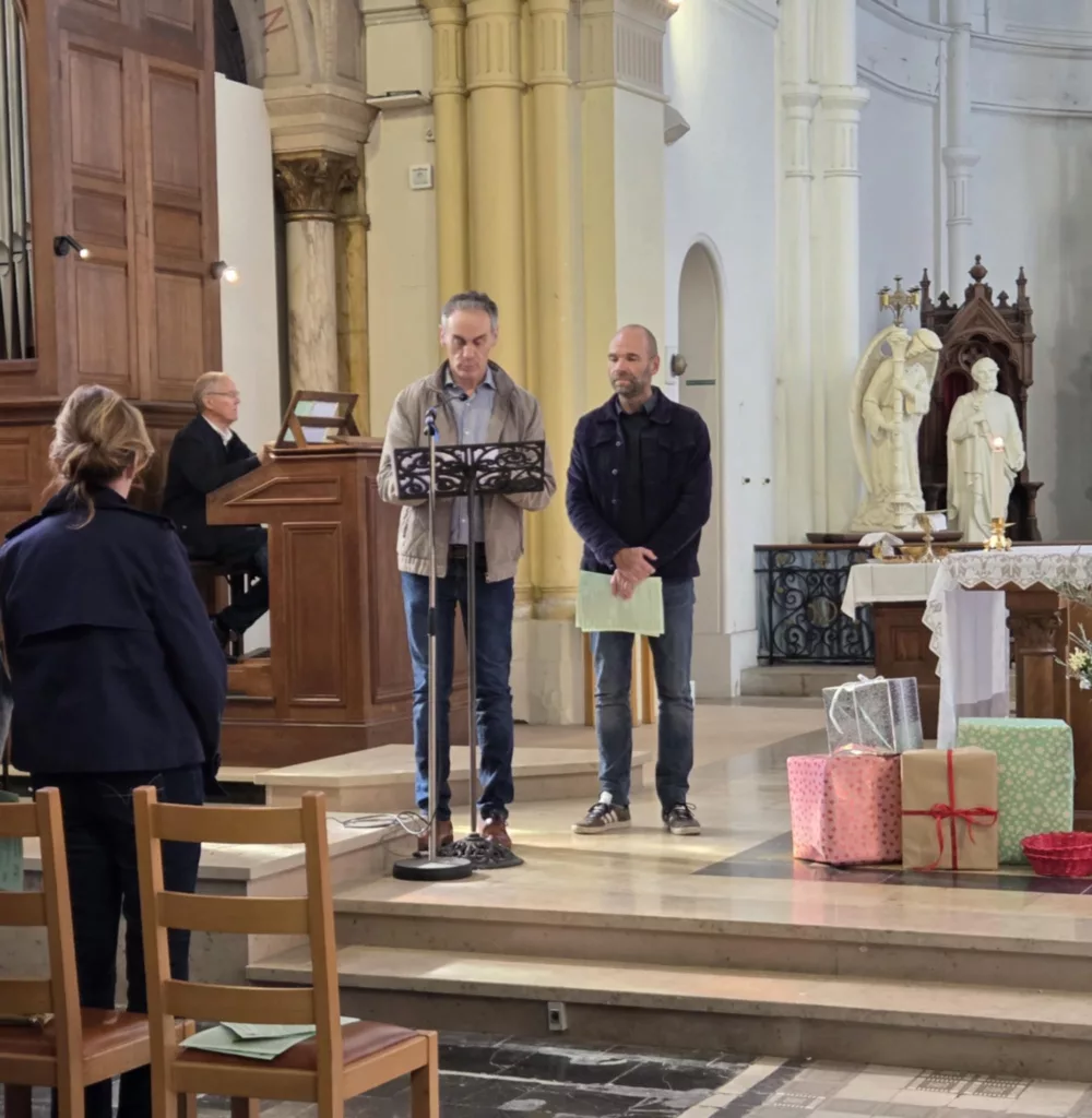 Cadeau, c’est le thème de l’enseignement catholique pour cette nouvelle année. Cadeaux sont nos frères et sœurs en Christ. Ce fût une joie de voir arriver toute une série de famille avec les écoles et le collège pour cette messe de rentrée et la bénédiction des cartables.