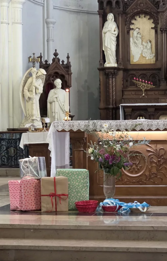 Et ce matin là , nous avons reçu, au cours de la messe, le cadeau de la parole de Dieu et le cadeau de la présence du Seigneur dans l’eucharistie.